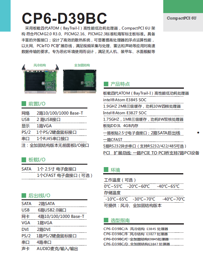 基于載四代ATOM(BayTrail-I)高性能低功耗處理器設計,CompactPCI 6U 架構 符合PICMG2.0