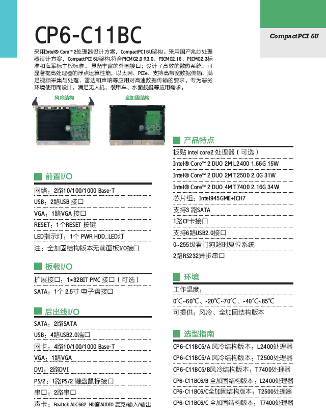 CP6-C11BC是一款基于Intel?945GME+ICH7M芯片組架構(gòu)刀片加固CPCI板; 板貼Intel Socket 478 支持Intel?Core? 2DUO CPU,板載DDR2 內(nèi)存高達(dá)2GB。 該產(chǎn)品具備優(yōu)越的數(shù)據(jù)處理能力、圖形顯示能力、網(wǎng)絡(luò)通訊能力、適用于對...