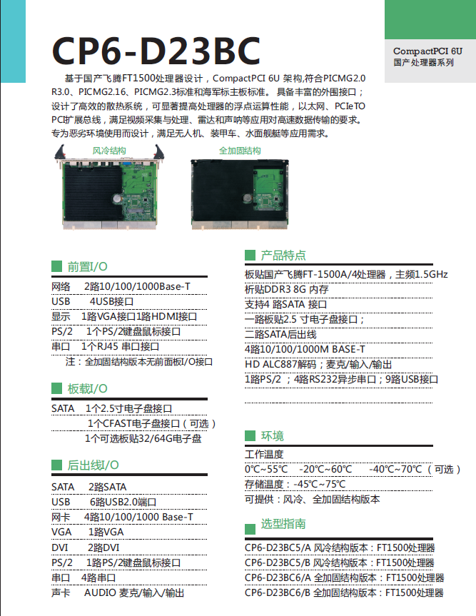 基于國產飛騰FT1500處理器設計,CompactPCI 6U 架構,符合PICMG2.0