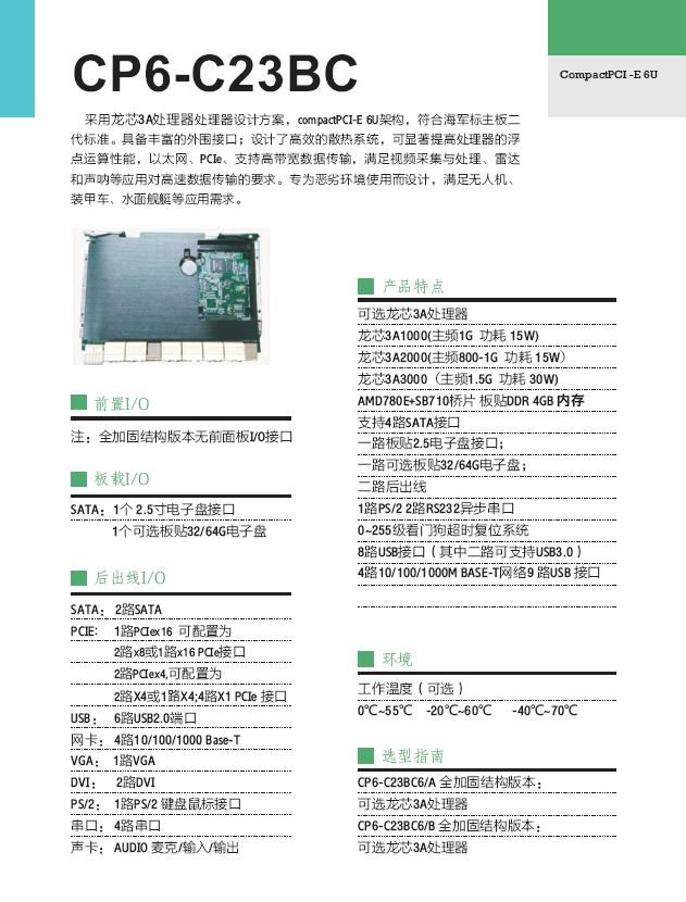 采用龍芯3A 處理器設(shè)計(jì),compactPCI-E 6U架構(gòu),符合海軍標(biāo)主板二